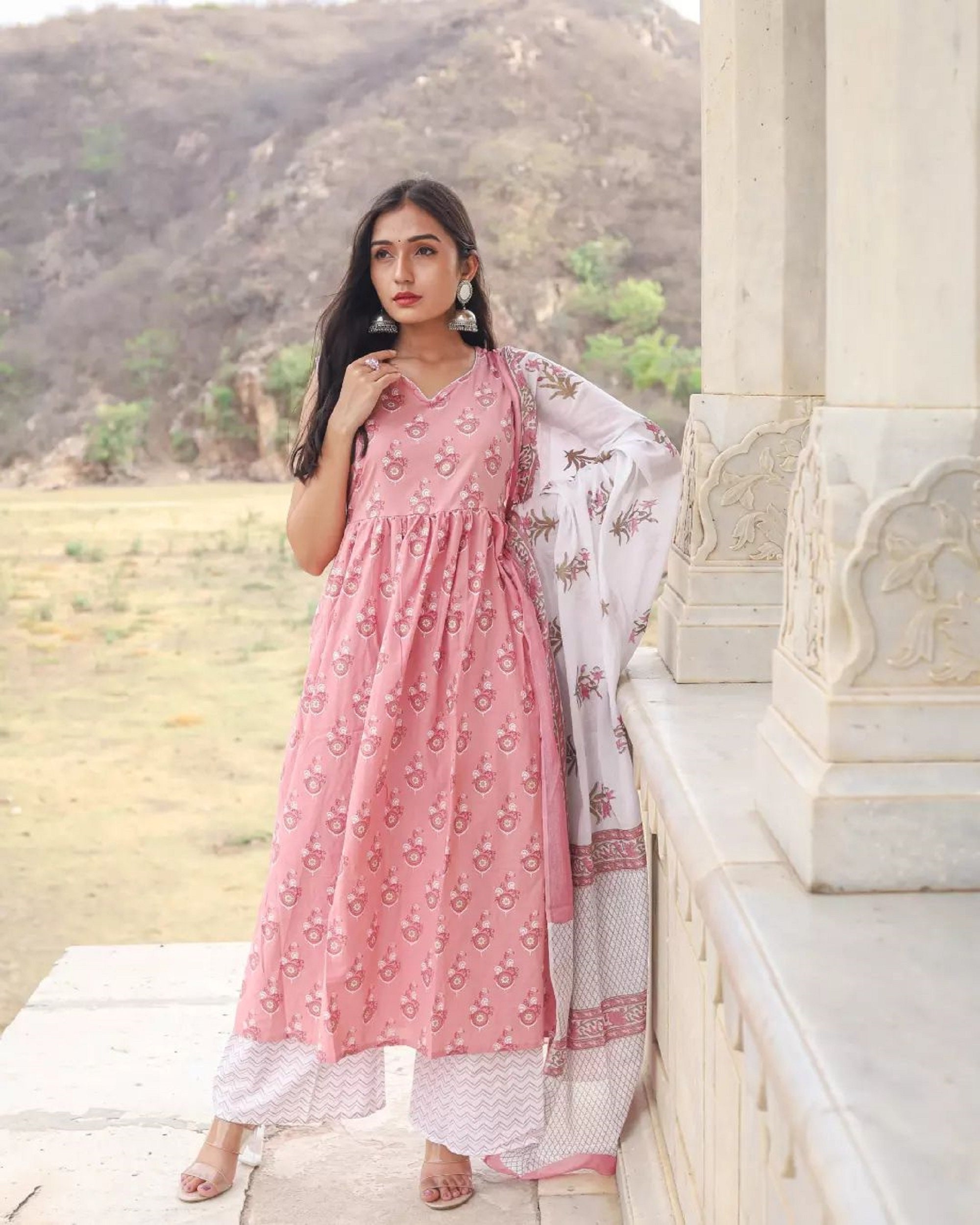 Buy Beautiful Kurti And Duppatta Combo Indian Pink Anarkali Suit Online In India Etsy